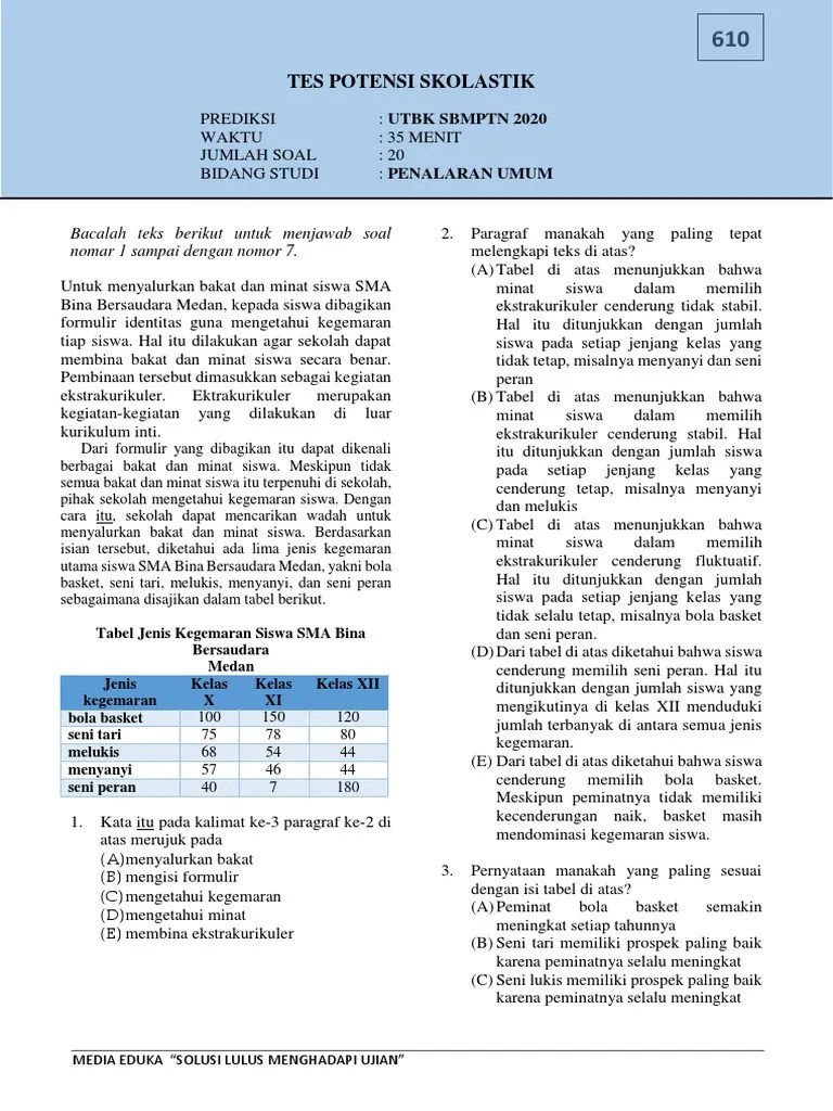 Prediksi soal sbmptn 2019 dan kunci jawaban terdiri dari 1.
